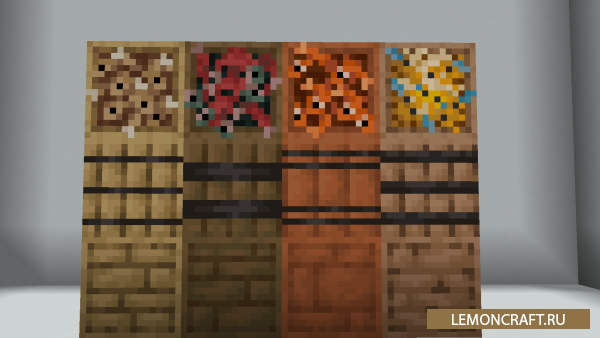 Мод на декоративные бочки Fish In Planks добавляет в игру 4 новых блока, которые похожи на бочки наполненные рыбой. Применить данные блоки можно только в строительстве, в качестве декораций, практической цели они никакой в себе не несут.